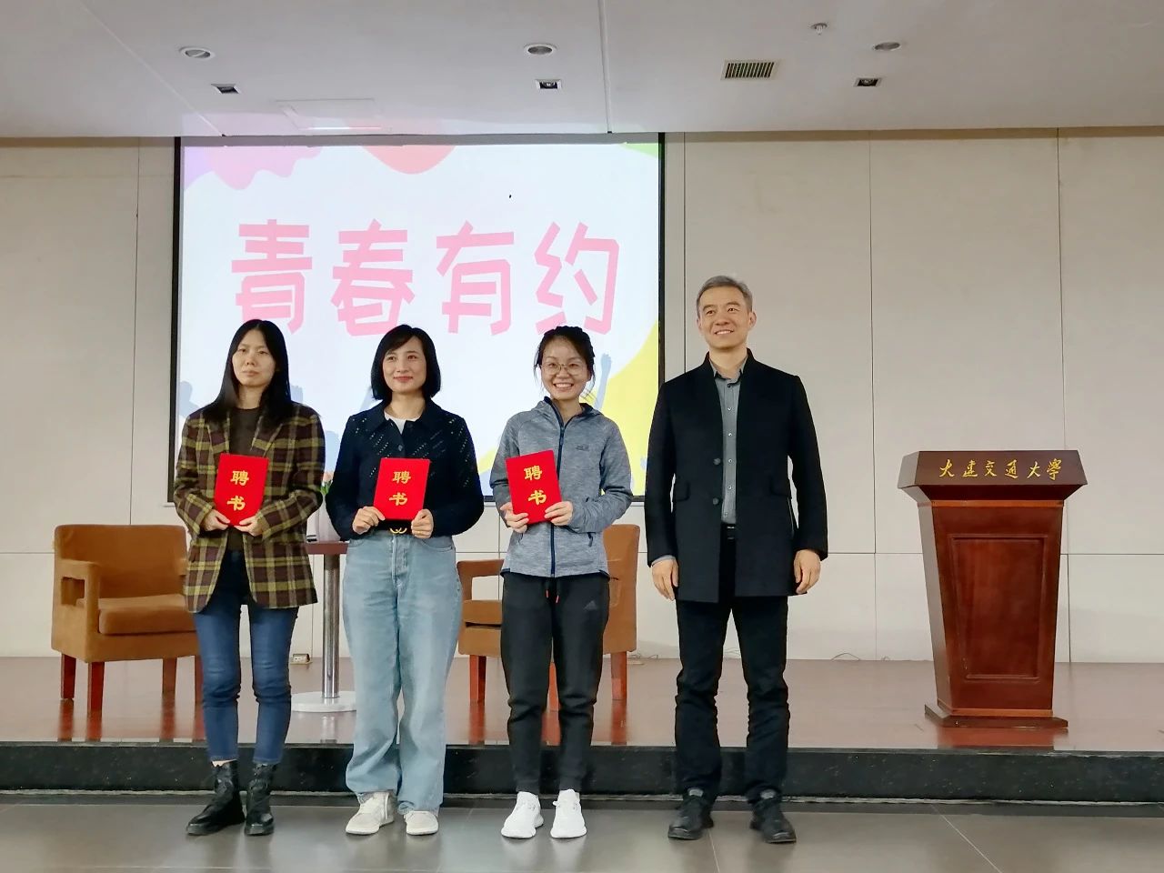 约会进入主题之前,基础部主任郑帆帆老师为3位班导师颁发聘书。