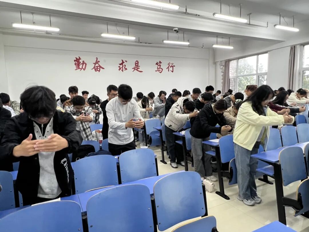 10月9日上午的第一节课,同学们不顾小雨的侵扰,早早来到教室,一部分同学与《大学语文》课程浪漫相遇。当老师们身着中国传统服装走进教室,这代入感一下就让大家进入到沉浸式学习模式。