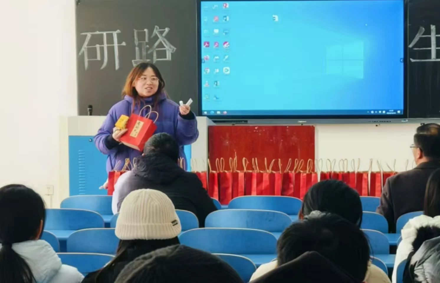 郝曼如老师讲解了考试相关的注意事项,预祝大家轻装上阵旗开得胜,并为考研学生准备了寓意“巧克难关”的巧克力、寓意“所愿皆成”的薯片和考试用具。