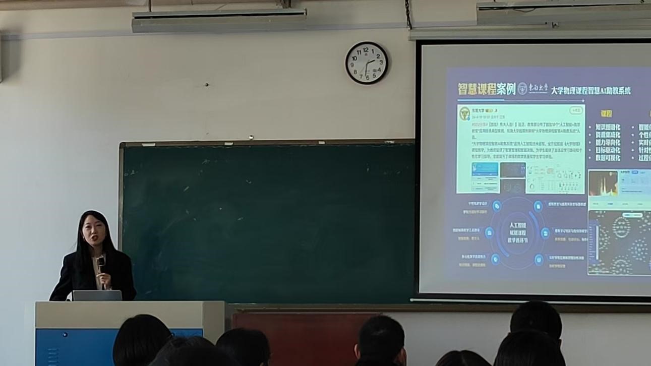 段志欣教授以《AI赋能课堂实践》为主题,结合豆包、DeepSeek等智能平台,系统讲解了AI在课程设计、学情分析、作业批改等场景的应用方法。段老师还通过具体案例展示了如何利用豆包生成多模态教学素材,指导学生使用DeepSeek进行物理概念的智能解析等方面的实际应用。