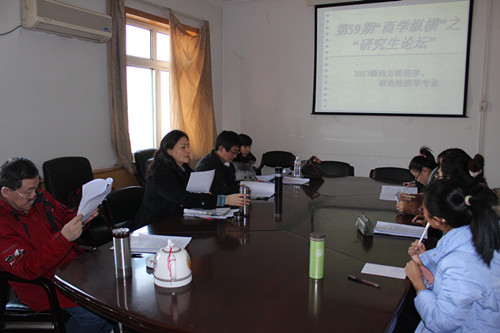 12月29日下午,商学院第59期“商学纵横”之研究生论坛在商学院西会议室召开。西方经济学专业导师和政治经济学专业导师,以及西方经济学和政治经济学专业全体研究生参与了此次论坛。