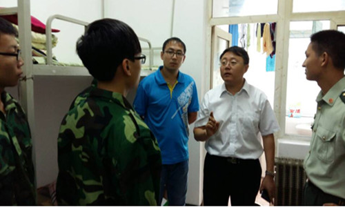 各位教官详细地向新生讲解了叠被子的要领、技巧,演示了标准“豆腐块”被型的叠法,并对正确摆放床上和桌面物品提出建议,要求新生做到床上整洁无杂物,牙缸、牙刷、牙膏一条线摆于课桌或洗漱台上,服装整理要干净平整等。老师们关怀地询问新生的军事训练及生活情况,认真仔细地对宿舍内务进行检查指导,并选出了五个标杆宿舍以鼓励新生认真做好宿舍内务整理,争创文明宿舍。在总结检查情况时党委副书记董爱民代表学院指出,宿舍内务整理利于新生培养自律意识、提高自我管理能力、养成良好的学习生活习惯,对同学们的身心健康和全面发展有着重要意义,务必将宿舍检查工作坚持下去,形成制度。
