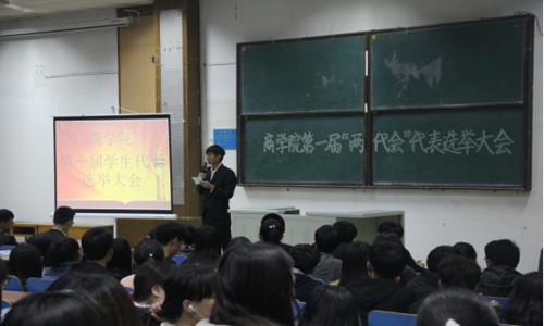 10月23号晚7时,商学院在第三教学楼C225召开第一届“学代会”及“团代会”代表选举大会。大会由商学院学生会主席魏润强主持,院团委书记康晗老师出席会议。