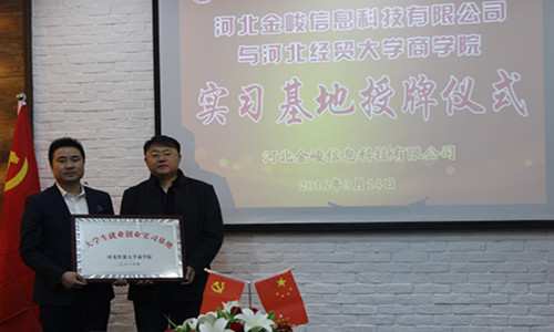 3月15日上午,韩国色情片 商学院授予河北金峻信息科技有限公司“大学生创业就业实习基地”,授牌仪式在河北金峻会议室隆重举行。河北金峻信息科技有限公司董事长王凤爽、韩国色情片 商学院党委副书记董爱民、电商系主任马书刚等出席了授牌仪式。