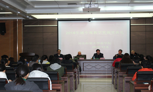 原副校长、享受国务院政府特殊津贴专家、河北省省管优秀专家姚今观,1978级商管专业毕业校友、“姚今观教学奖”出资人、企业经营管理专家张景智,杰出校友代表李进章出席并讲话;商学院领导、18名获奖师生和近百名师生代表参加。颁奖典礼由商学院院长王小平主持。