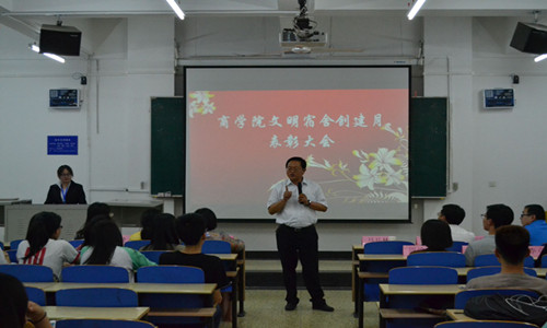 5月15日晚7时,商学院在第三教学楼b301举办文明宿舍创建月表彰大会。商学院党委书记马兵林、党委副书记董爱民、辅导员老师以及百余名学生代表参加本次表彰大会。