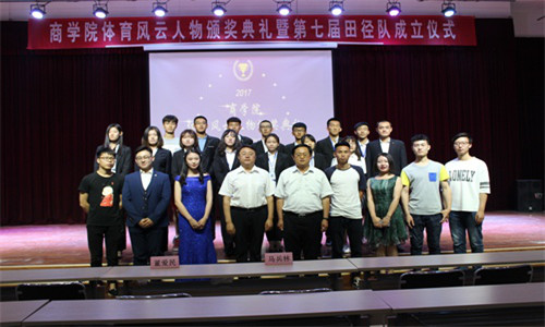 5月17日19时,商学院体育风云人物颁奖典礼暨第七届田径队成立仪式在大学生活动中心3号厅举行。商学院党委书记马兵林、党委副书记董爱民出席,学院运动员代表、学生代表共计300余人参加。