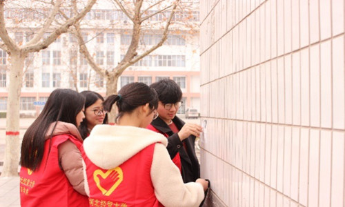 商学院志愿者向广大同学介绍志愿服务活动的重要意义,呼吁同学们“从小事做起,从身边做起”,争做“爱护校园、甘于奉献”的当代大学生。志愿者们准备了垃圾袋、洗洁精、清洁球、小铲子等清洁工具,分成五个小组迅速投入工作,分别前往教学楼、办公楼、宿舍楼等地点,清理贴在墙壁上的小广告。各小组成员分工明确,团结协作,认真清理贴在校园里的小广告,用实际行动温暖着校园的每一个角落。