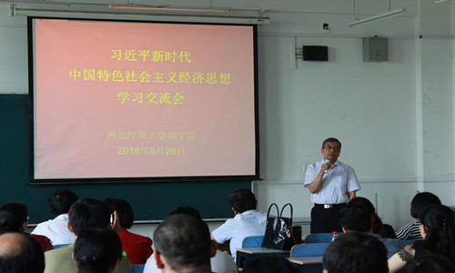 5月28日下午2时,商学院在第三教学楼b302教室举办了习近平新时代中国特色社会主义经济思想学习交流会。会议由副院长刘振滨主持,武建奇教授出席会议,学院全体教职工80余人参加。