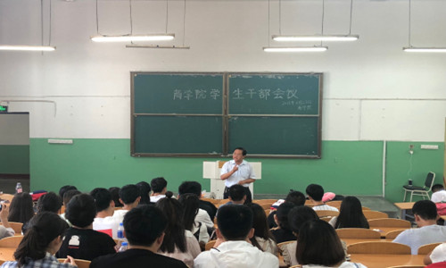 6月23日上午,商学院在北校区第一阶梯教室召开学生干部会议,学院党委书记马兵林出席并讲话,各班班长、团支部书记以及学生会干部100余人参加。会议由学院党委副书记董爱民主持。