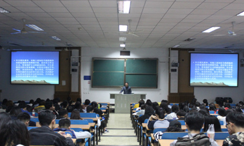 选派的5位形势与政策教师主讲,商学院2015级、2016级、2017级全体学生约1500人参加。