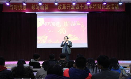 本次活动,通过以主题征文写作的方式进行初赛,选拔出优秀作品组成的来自不同年级不同班级的12支队伍参加决赛。参赛选手们通过改革开放相关知识竞答、诗歌朗诵、新闻报道、讲述故事等形式,讴歌中国改革开放40年的伟大成就,展现出当代大学生不忘初心、砥砺前行、奋斗青春的爱国主义情怀。马兵林为同学们提出三点希望:一是希望同学们坚定理想信念,树立正确的世界观、价值观和人生观,熟悉了解我国改革开放40周年巨大变化,不断增强民族自豪感和自信心。二是希望同学们坚定中国特色社会主义道路自信、理论自信、制度自信和文化自信,坚决拥护中国共产党的领导,牢固树立政治意识、大局意识,核心意识和看齐意识。三是希望同学们坚定改革开放的的信心和决心,做好人生规划,苦学专业本领,为实现中华民族伟大复兴的中国梦做出自己应有的贡献。活动现场气氛热烈,掌声不断,收到同学们的高度赞誉。