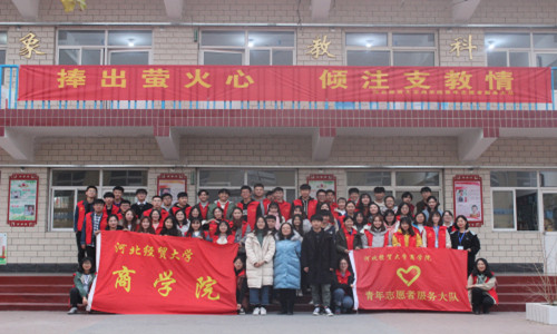 2018年11月,商学院组织百名志愿者赴石家庄市大孙村小学开展第四期“萤火”支教志愿服务系列活动。