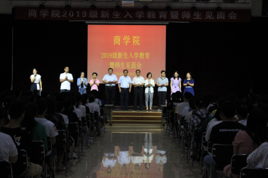 8月26日,商学院在大学生活动中心三号厅组织召开2019级新生入学教育暨师生见面会,商学院领导班子、各系主任、教师代表、新生辅导员及2019级全体新生共500余人参加。