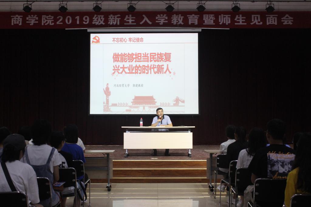 8月26日上午,商学院在大学生活动中心三号厅组织开展了2019级新生思想政治与形势政策教育。马克思主义学院副院长郭建教授主讲,商学院党委副书记侯彦利、新生辅导员及2019级全体新生近500人参加。