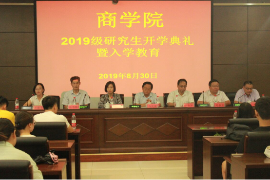 8月30日上午,商学院在第三会议室召开2019级研究生开学典礼暨入学教育大会。商学院领导班子、导师代表、研究生辅导员及2019级全体研究生参加。