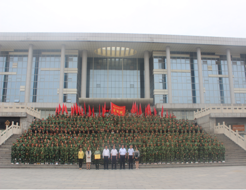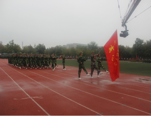 在操场隆重举办2019级大学生军训结业式,全校15个学院组成的表演方队依次接受学校各级领导及部队首长的检阅,商学院各级领导、新生辅导员老师及全体2019级新生参加本次汇演。