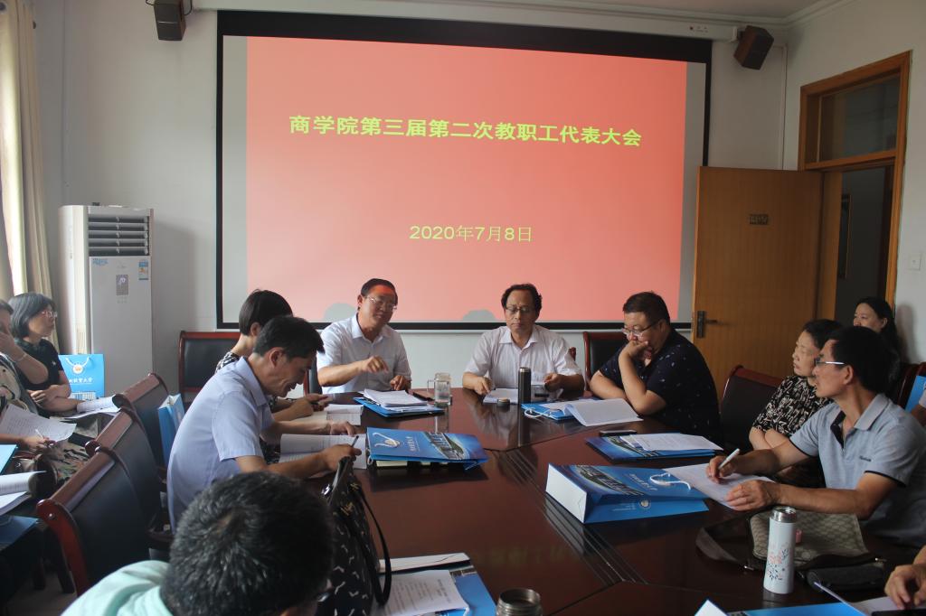 2020年7月8日,商学院第三届第二次教职工代表大会在学院会议室召开。大会应到代表34人,因疫情等原因未能到现场的代表6人,实到代表28人,符合法定人数。大会由学院分工会主席、学院党委副书记侯彦利主持。