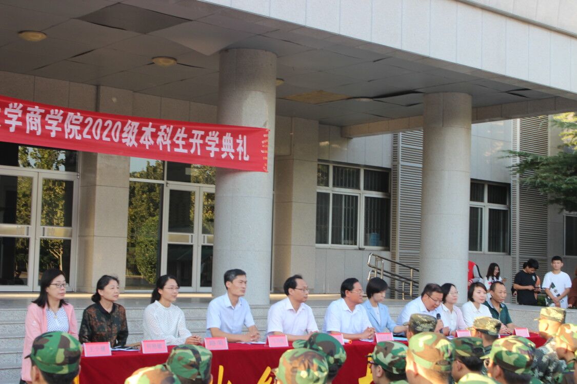 9月16日下午,商学院在第一教学楼前广场举行2020级本科生开学典礼。商学院党委书记马兵林、院长王小平、党委副书记侯彦利、副院长刘振滨、副院长马书刚、学生工作办公室主任李珊珊、团委书记路荣,新生辅导员老师何艳敏、王小健、智明增、邵凡及三位军训教官出席典礼,商学院488名新生参加,典礼由商学院副院长刘振滨主持召开。