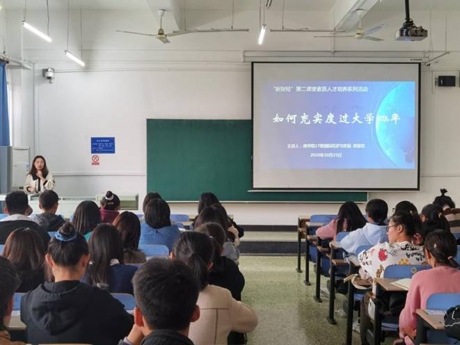 2017级国际经济与贸易专业成功保研中央财经大学的潘盈忱主讲,2020级部分学生参加。