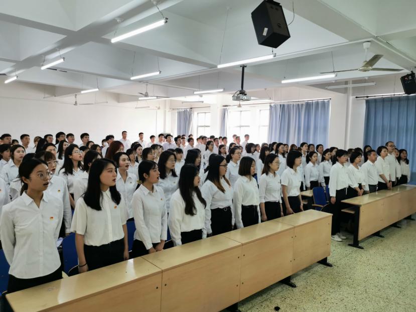 6月8日中午,商学院在北三教B401教室举行学生新党员入党宣誓仪式,商学院党委书记马兵林、党委副书记侯彦利、各学生党支部书记和2021年上半年新发展的学生党员共140余人参加。仪式由学院党委秘书李珊珊主持。