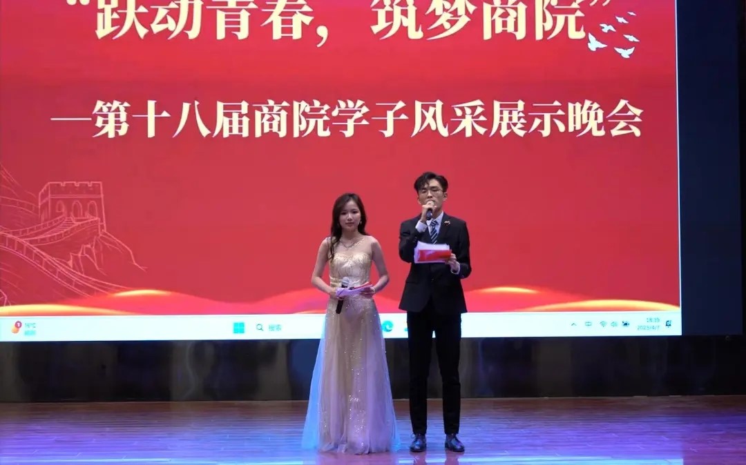 商学院于4月7日晚上在大学生活动中心举办“跃动青春·筑梦商院”第十八届风采展示晚会。商学院党委副书记侯彦利、正处级辅导员韩意来、专职教师赵培红和李涛、办公室主任刘立宾、专职组织员李珊珊、团委书记路荣、辅导员王小健、李雪松、康晗、吴子雨以及其他学院四位老师出席本次活动。本次晚会异彩纷呈,接下来让商商带你欣赏一下商院学子的风采!