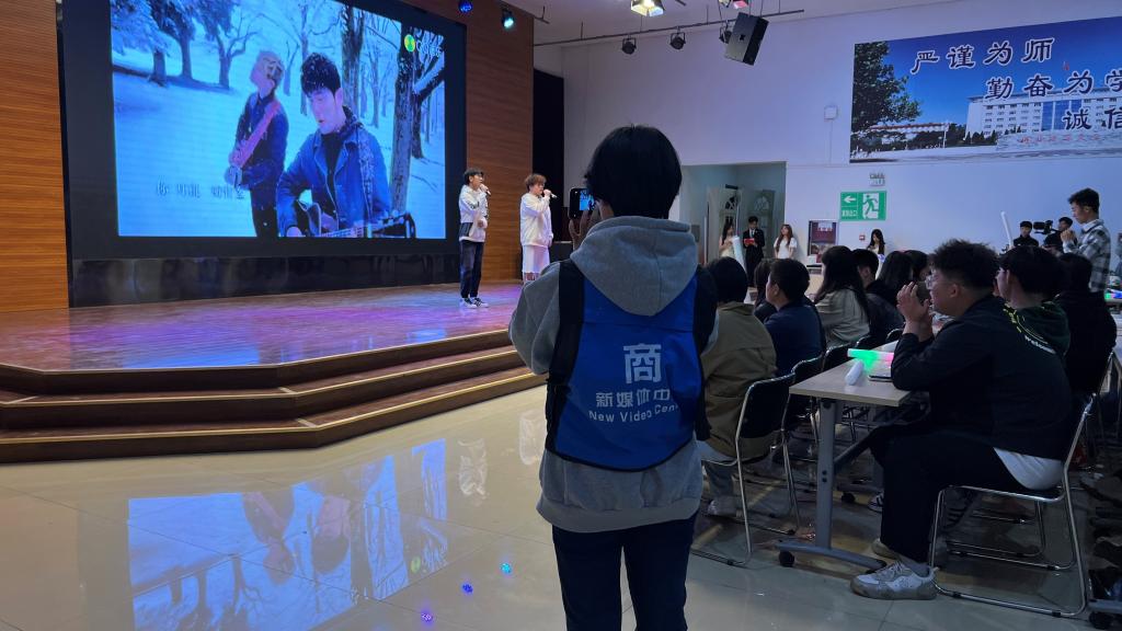 本次晚会进行线下表演的同时,商学院新媒体中心也负责着线上直播,使更多同学参与到了晚会中来。舞台固然是我们关注的焦点,但舞台的背后凝聚着各部门同学的共同努力,他们在幕后,推动着这场晚会的有序进行。