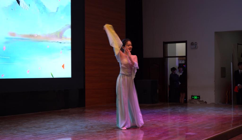 音乐的旋律响起,商院学子用动人聆听的歌喉带领着现场观众沉醉其中。《我乘着风飞过来》唱出了对前方的期待和对未来的憧憬;《微微》鼓励我们以坚韧不拔的毅力朝前走去;《等你下课》唱出了短暂但炽热的青春;大合唱《夜空中最亮的星》则是让我们在黑暗中点燃光明的火把,明确前进的方向。