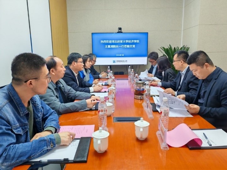 院长王重润带队,党委副书记侯彦利、副院长单海鹏、国际贸易系主任李清、数字经济系副主任李涛、团委书记路荣一行共6人赴河钢集团供应链管理有限公司(简称河钢供应链)走访会谈。河钢供应链市场运营部总经理杨世广、创新研究院总经理董大伟、数据组负责人李远、数据组张兴龙参加本次活动。
