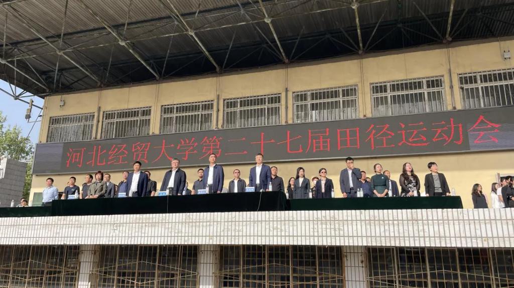 第二十七届田径运动会开幕式在运动场如期举行,升国旗,奏国歌,校领导致开幕词,裁判员、运动员宣誓。运动会正式开幕!