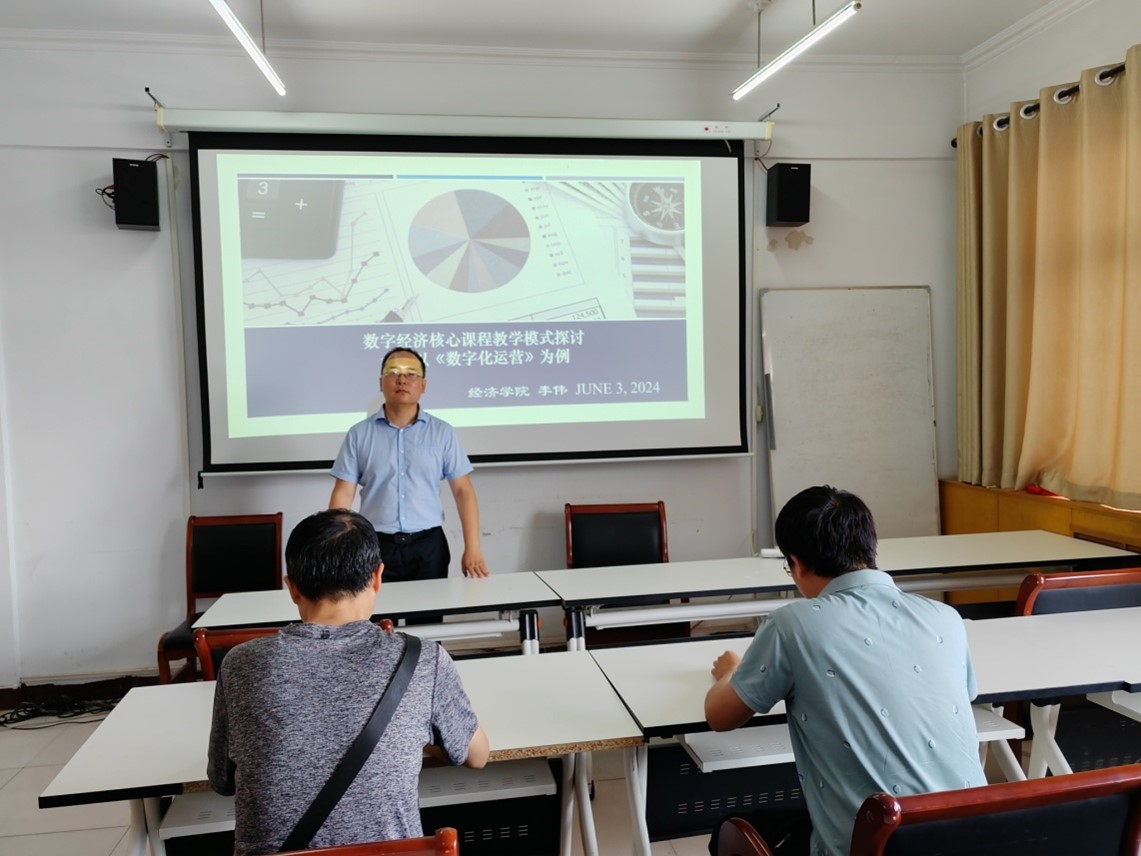在学院中会议室举办了题为《数字经济核心课程教学模式探讨——以〈数字化运营〉为例》的教学沙龙活动。活动由数字经济专业教师李伟主讲,教学副院长单海鹏主持,全校30余名教师参加。