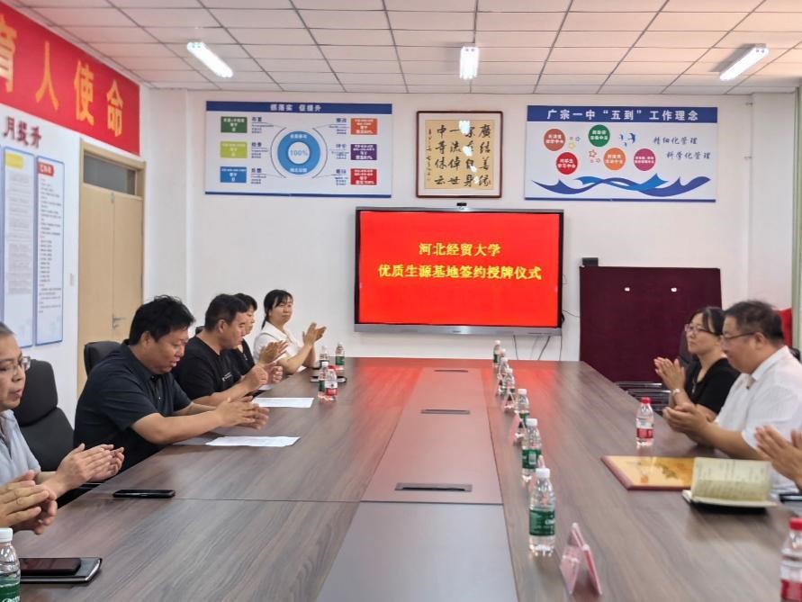 党委书记刘振滨带队赴广宗县第一中学进行走访交流并签约授牌优质生源基地。广宗一中党总支书记杨朝宁、校长昝海峰等领导和老师出席了本次活动。