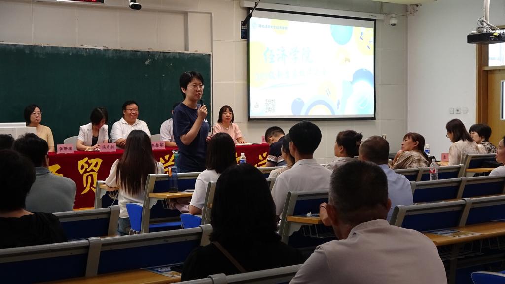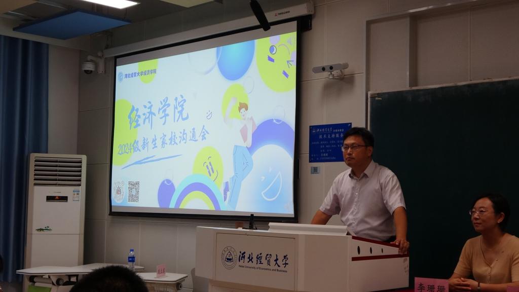 王重润对24级新生家长表示欢迎和感谢,并从历史沿革、学院组成、专业介绍、育人成果等方面介绍了学院的基本情况,强调学院践行“知行合一、经世济用”的院训,始终坚持推动家校合力、协同育人,持续推动师生的同频共振与共同成长,致力于培养全面发展、高质量的优秀人才。