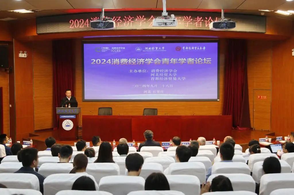 等部门承办的以“新型消费发展与扩大内需战略”为主题的2024消费经济学会青年学者论坛在国际学术报告厅举行。校党委书记刘兵、消费经济学会会长卓志、首都经济贸易大学副校长陈彦斌(线上)出席并致辞,来自南开大学、中国人民大学、西南财经大学、重庆大学、首都经济贸易大学、北京外国语大学、浙江工商大学、湖南师范大学等高校的专家学者参会。会议由校党委常委、副校长田学斌主持。