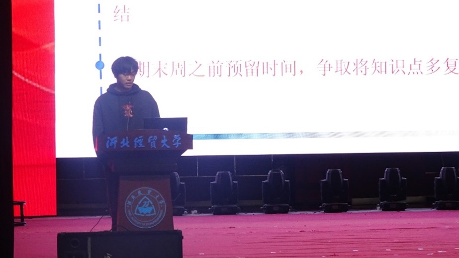 张颢严以回首四年的光阴开篇,着重分享了自己处理学习和生活的对策,他指出在延续高中的好习惯,贯彻终身学习的理念的同时,也要领悟大学生活的美好。学习并不是埋头苦干无目的地学,而是要博采众长地学,有针对性地学,做到统筹兼顾。