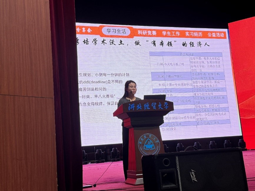 李秉曦从明确目标大学目标和如何进行职业规划两个方面进行分享,并推荐大家积极参加职业生涯规划大赛,做好未来职业规划。她表示,人生是旷野,不是轨道,未来的路上可能有很多选择,但无论选择了哪条路,经历了哪些波折,都要朝着目标继续前行。