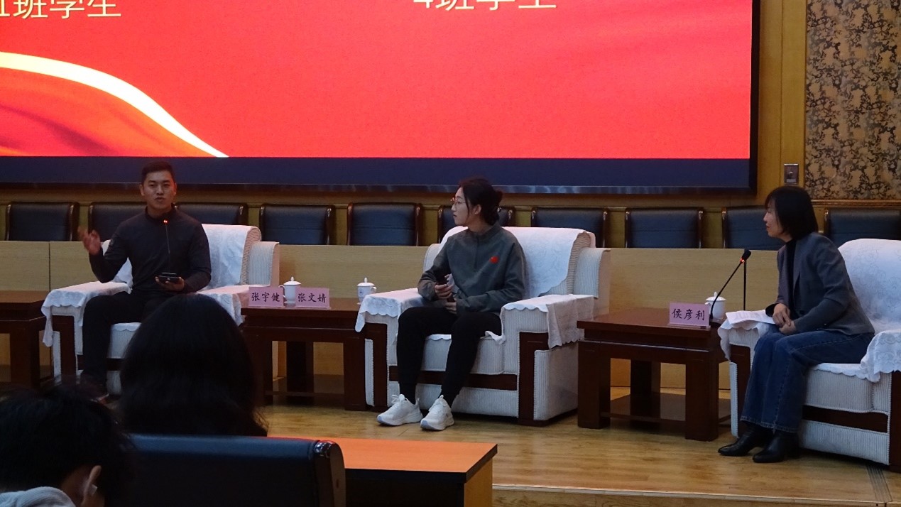 作为刚退役复学的在校生代表,张宇健、张文婧首先分别结合在部队训练的经历,向同学们分享了部队经历对重返校园后的自己在思想、学习和生活上的积极影响。