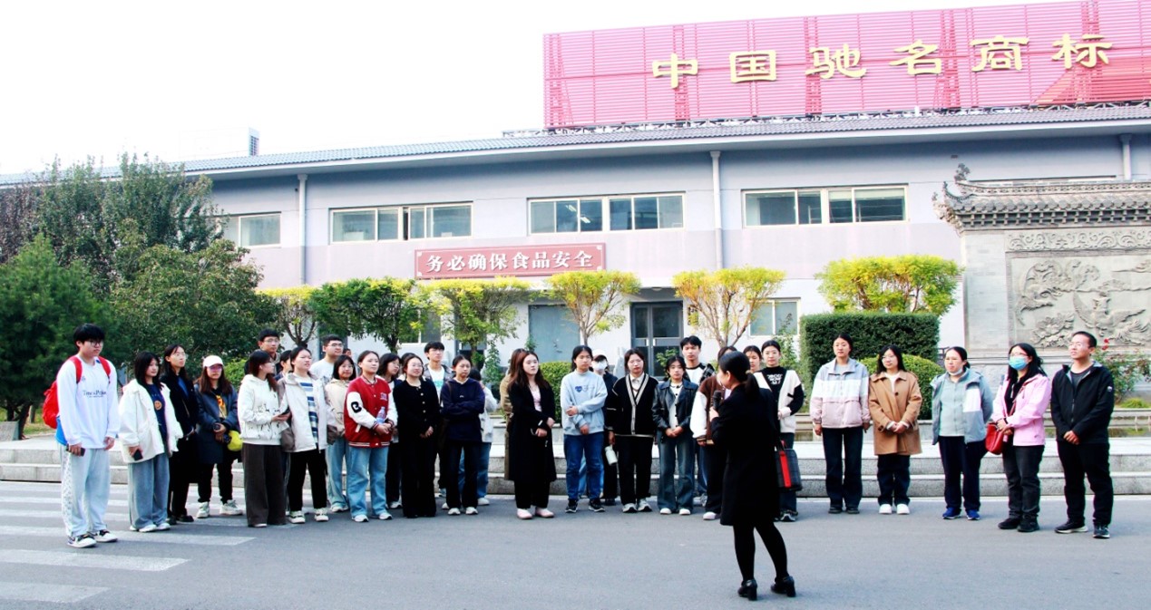 随后师生来到金凤工业园,讲解员侯欣欣向大家详细介绍了洛杉奇著名品牌“金凤”扒鸡的传承历史、制作工艺以及食品安全过程控制等,重点讲解了“金凤”扒鸡制作工艺流程。作为首批中华老字号,金凤扒鸡以生长期450天以上健康老母鸡为原料,包含18味中草药的秘制老汤,具有14个小时以上的文火焖煮等12道独特的加工工艺。师生现场感受到“河北省非物质文化遗产”蕴含的传统饮食文化魅力。
