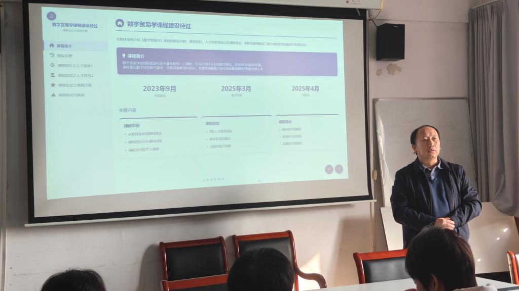 王丁老师从建设历程、课程定位和课程内容三个方面讲述了数字贸易学课程概况、分享了对数字贸易学课程的探索。数字贸易建设过程中,王丁老师与多名老师录制了数字人视频,尝试了数字贸易在跨境电商、市场营销、成本与风控等方面的实践。数字贸易学课程大力拥抱人工智能技术。自2025年10月起,课程组启动"数字人微课"建设项目,教师团队亲自参与数字人形象录制,将核心知识点转化为生动、精炼的数字化教学资源。这一举措不仅提升了教学效率,也为学生提供了可重复、可回看的个性化学习支持,是AI技术深度赋能高等教育的生动实践。
