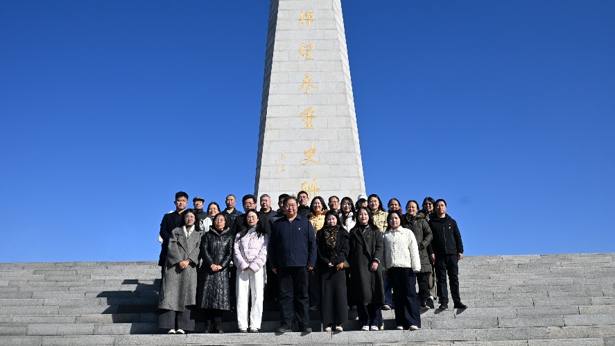 在百团大战纪念碑前,刘振滨带领全体党员庄严宣誓,重温入党誓词,深切缅怀在百团大战中英勇牺牲的革命先烈。