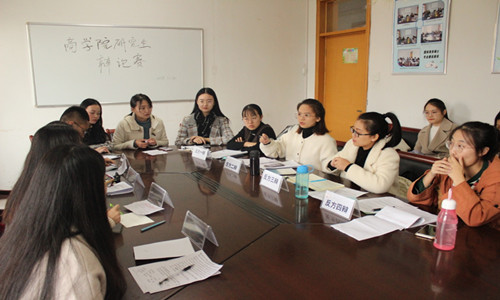 11月14日下午,商学院在学院西会议室举办研究生辩论赛,研究生辅导员和全体在校研究生参加。