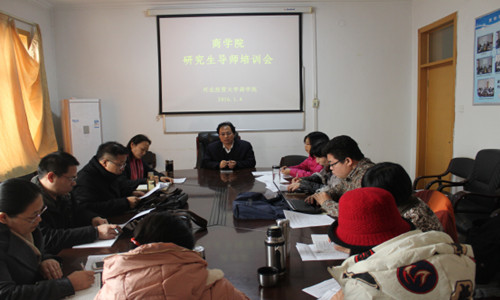 2016年1月4日,商学院在学院会议室举办了新晋研究生导师培训会。学院副院长戎素云主持,院长王小平及新晋导师参加了会议。