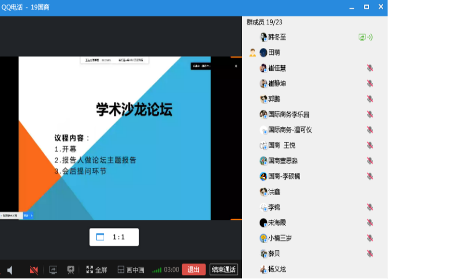 举办了“商学纵横”之国际商务研究生论坛。受疫情影响,此次论坛活动线上会议的方式召开。2019级国际商务专业的全体研究生参加了本次论坛。毕业生崔佳慧、吴若楠对报告论文进行了点评并分享了考博经验。