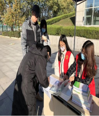 11月13日上午,同学们来到图书馆广场指定地点,在志愿者的引导下对图书进行分类同时完成相关信息的登记工作。除此之外,同学们还同志愿者就书籍捐赠情况进行交流并合影留念。
