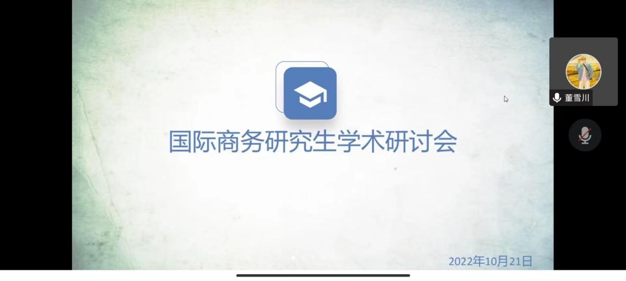 商学院2022级国际商务全体研究生于2022年10月21日举行了线上学术沙龙活动。来自2021级国际商务7名优秀学生进行了分享交流。