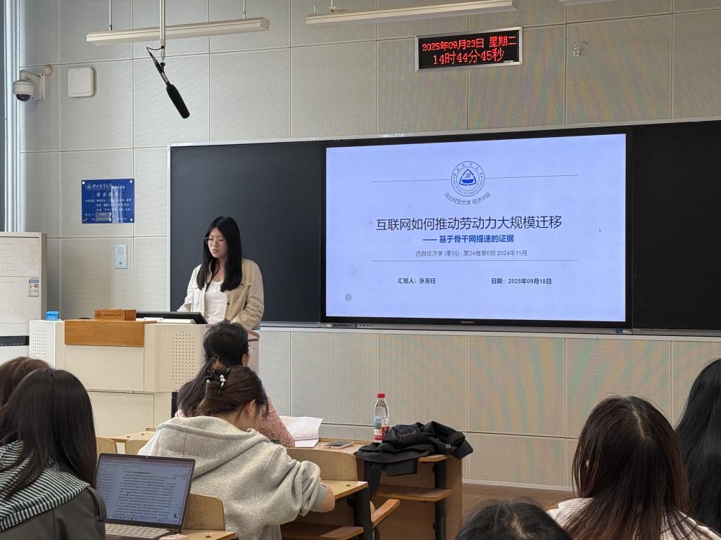 张蔓钰同学分享了一篇发表在《经济学(季刊)》上的一篇文章:《互联网如何推动劳动力大规模迁移?——基于骨干网提速的证据》,并从研究背景、文献综述、实证结果、机制分析、结论与政策启示等方面进行介绍。文章以2000年中国内地宽带互联网的出现作为准自然实验,发现宽带互联网显著促进了劳动力的内部迁移,这部分移民主要由低学历和持有农业户口的省内流动人口构成。机制分析表明,宽带互联网通过改善劳动力市场信息环境,吸引人口向工作机会信息更丰富的地区流动,进而引致劳动力迁移;同时,移民网络则促进了新增信息在新旧移民之间的扩散分发,使得人口迁移流向与信息流向在空间上保持一致。因此,文章提出提高劳动力市场信息供给、完善公共就业服务等政策建议。