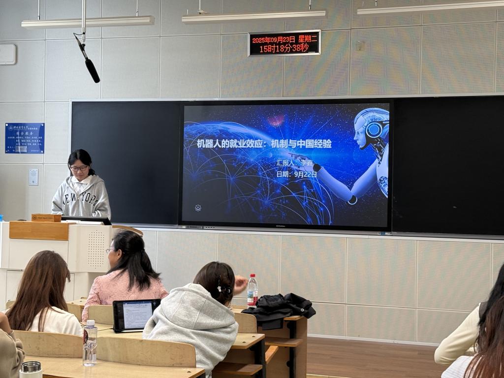 对于李鑫同学的分享,付老师认为这篇文章选题基于当前数字化基础、就业热点来选题,结合时事。另外老师提出可以就机器人对于某个行业就业的影响展开拓展研究,鼓励同学们发散思维,不断创新。