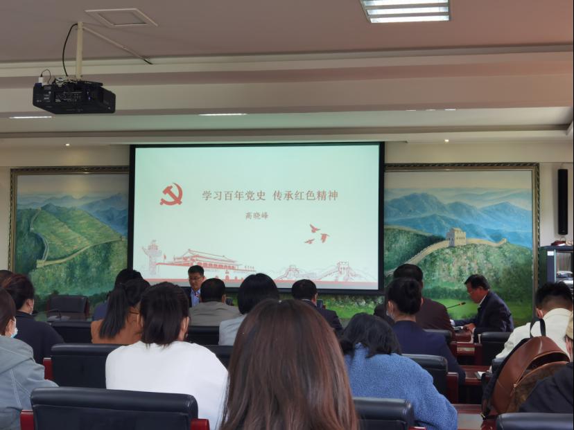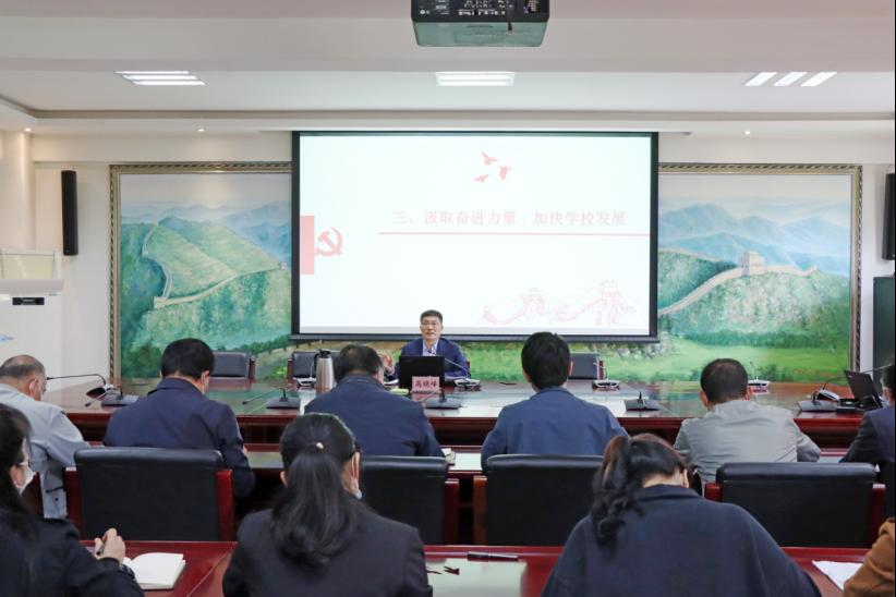 4月14日下午,高晓峰在学校第五会议室以“学习百年党史,传承红色精神”为题开展党史学习教育宣讲。商学院等部门领导班子成员、师生代表参加。