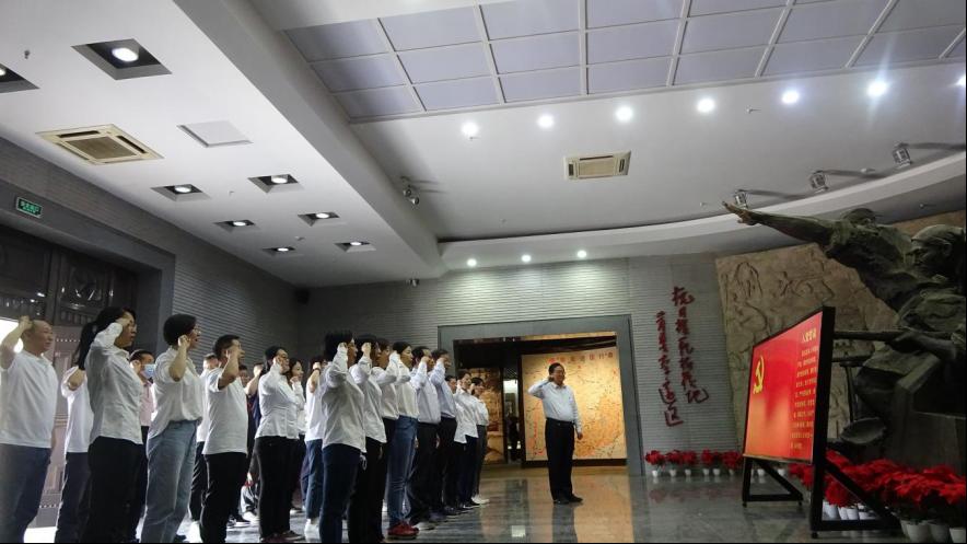 5月8日,党员们赴城南庄晋察冀边区革命纪念馆和骆驼湾村进行考察学习。城南庄是当年晋察冀军区司令部和毛泽东主席等中央领导同志工作和生活的地方,是全国爱国主义教育基地。在讲解员生动的讲解下,党员们再次回顾了中国共产党走过的峥嵘岁月,深刻感受到革命先烈坚定的革命精神和大无畏的牺牲精神,思想上受到一次深刻洗礼。在纪念馆英雄雕像前,学院党委书记马兵林带领全体党员面向党旗庄严宣誓,重温入党誓词,诠释初心使命,坚定理想信念。