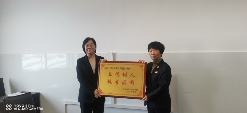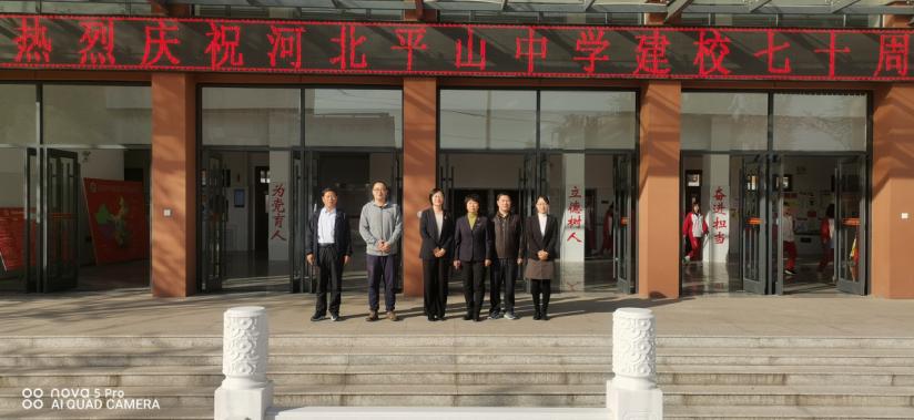 10月15日下午,商学院学生工作办公室主任李珊珊、团委书记路荣和学生第一党支部书记刘哲君赴河北平山中学,祝贺河北平山中学建校70周年,深化党建合作平台建设。
